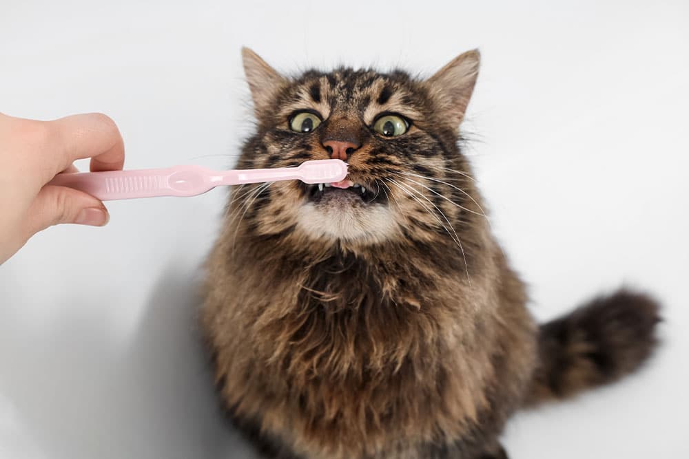 Our team routinely demonstrates brushing techniques during dental visits and preventive exams, adjusting recommendations based on each cat’s response.